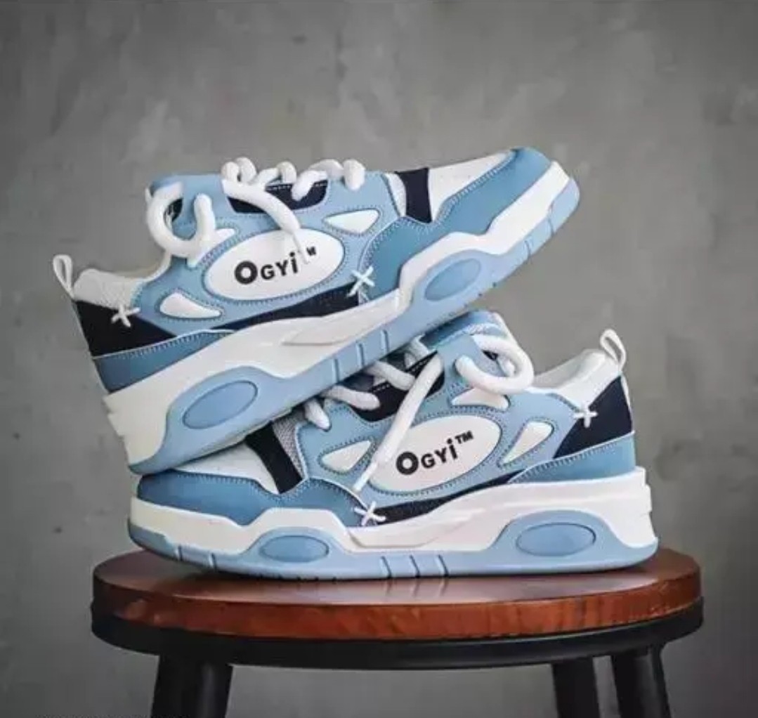 The sneaker showcases the OgiY™ logo prominently on the side, surrounded by abstract panel stitching and unique X-shaped detailing, giving it a street-style edge. With thick, cushioned midsoles and a high-traction outsole, these sneakers blend function with fashion effortlessly.